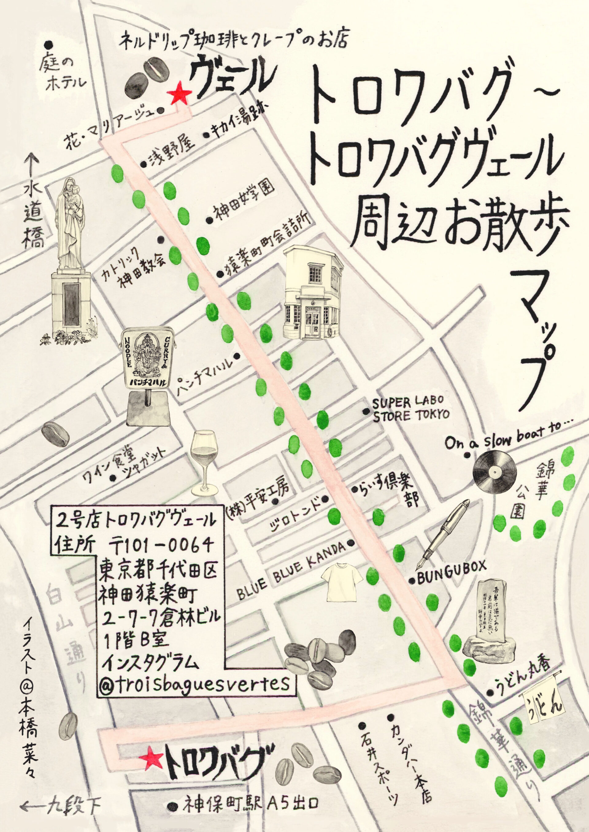 ●カフェトロワバグ1号店と2号店を結ぶお散歩マップ、2号店看板制作